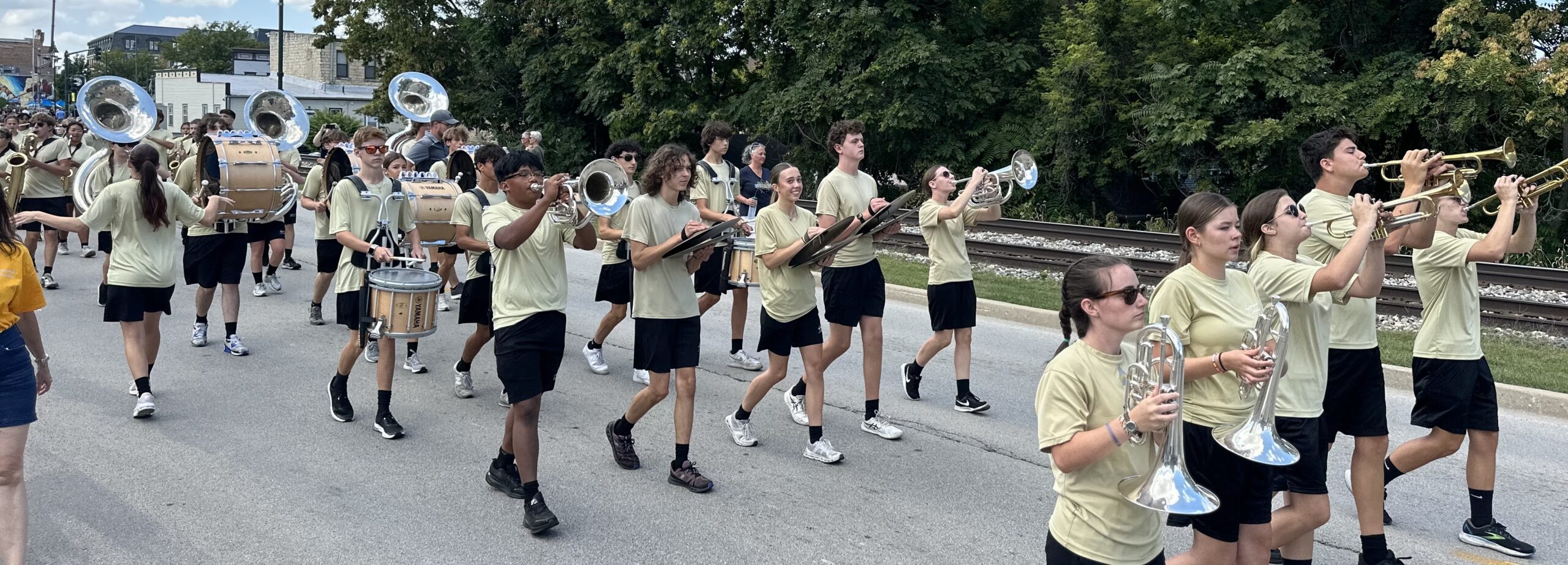 Band Members are required to wear a special shirt and pair of shorts beneath their marching band uniforms AND to own marching shoes.